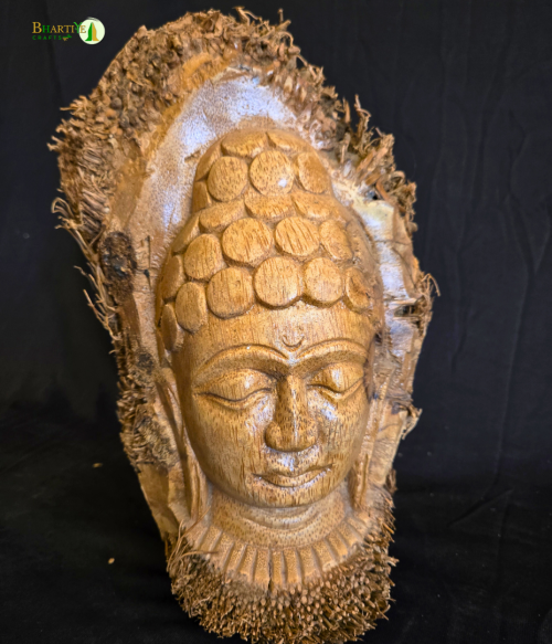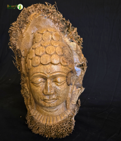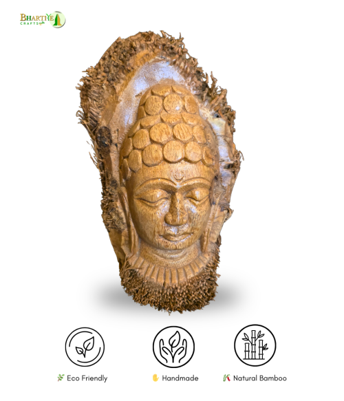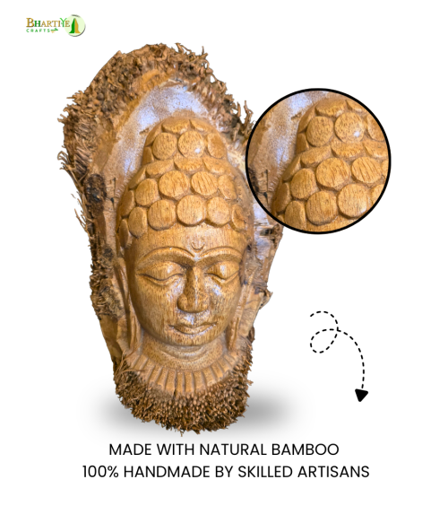 Artistically handcrafted Buddha statue made from bamboo root