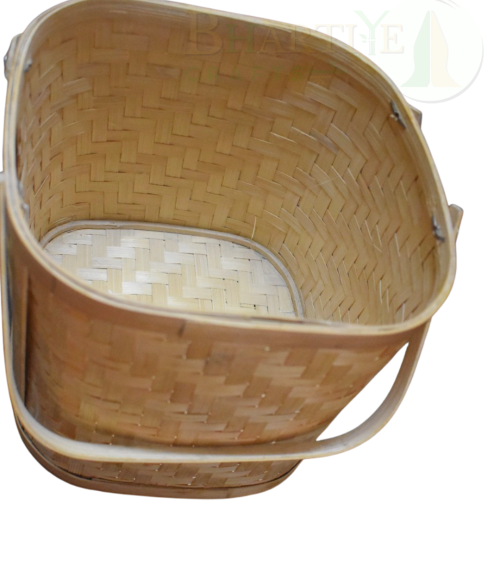 Classic Handwoven Medium Size Bamboo Basket with Dual Handles- 6*6*6 Inch (#BB0017)
