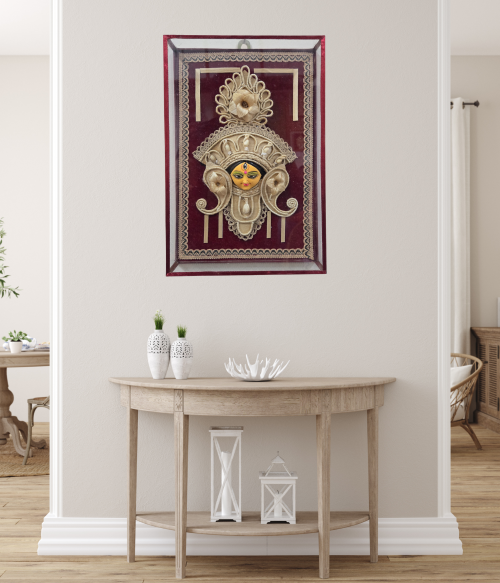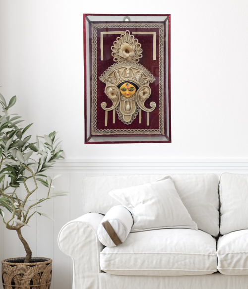 Divine Grace – Handmade Goddess Jute Wall Art Frame-Maa Durga Face (#JP0001)