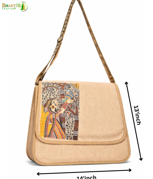 Tags: Jute bag Jute sling bag Madhubani jute bag Handmade jute bag Eco friendly jute bag Jute handbag India Jharkhand artisans jute bag Sustainable fashion bag Bhartiye Crafts jute bag