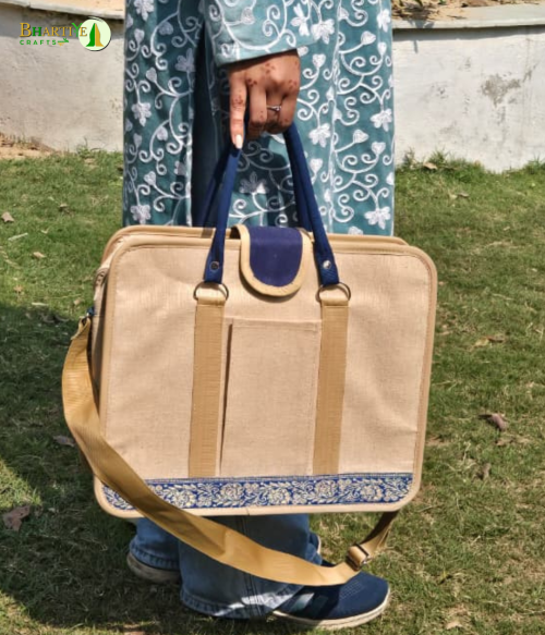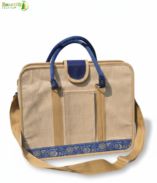 Bhartiye Crafts | Premium Jute Laptop Office Bag with Blue Handle | Artisans from Jharkhand