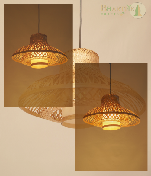 Tags: bamboo hanging lamp handmade bamboo light eco friendly pendant lamp sustainable lighting Indian handicraft decor Tripura artisans Bhartiye Crafts lighting