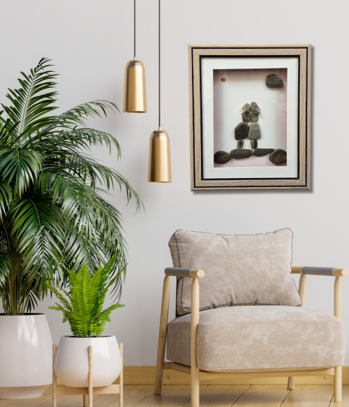 Mother’s Warm Embrace – Handmade Pebble Art Frame (#PB0020)