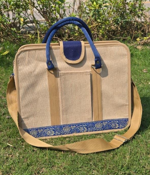 Bhartiye Crafts | Premium Jute Laptop Office Bag with Blue Handle | Artisans from Jharkhand