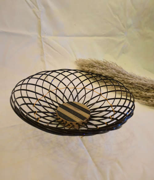Handcrafted round bamboo basket made from natural, durable bamboo strips