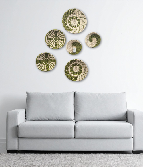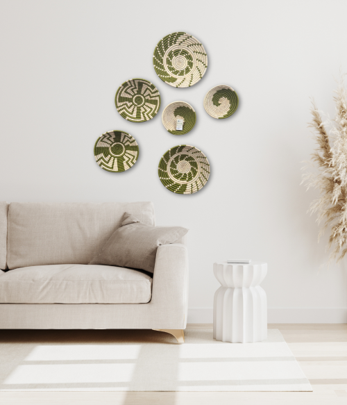 Handwoven Sabai Grass Wall Decor – Green & White Spiral Design Set Of 6