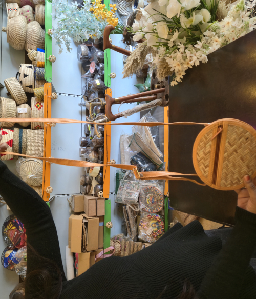 This beautifully handcrafted Sitalpati round sling bag adds artistic charm to any outfit. Lightweight, stylish, and eco-friendly, it is perfect for carrying small essentials on the go. The natural woven finish makes it a versatile accessory for casual outings, travel, and everyday wear.