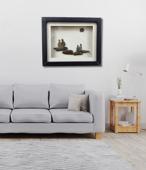 Under the Moonlight – Family Pebble Art Frame (#PB0023)